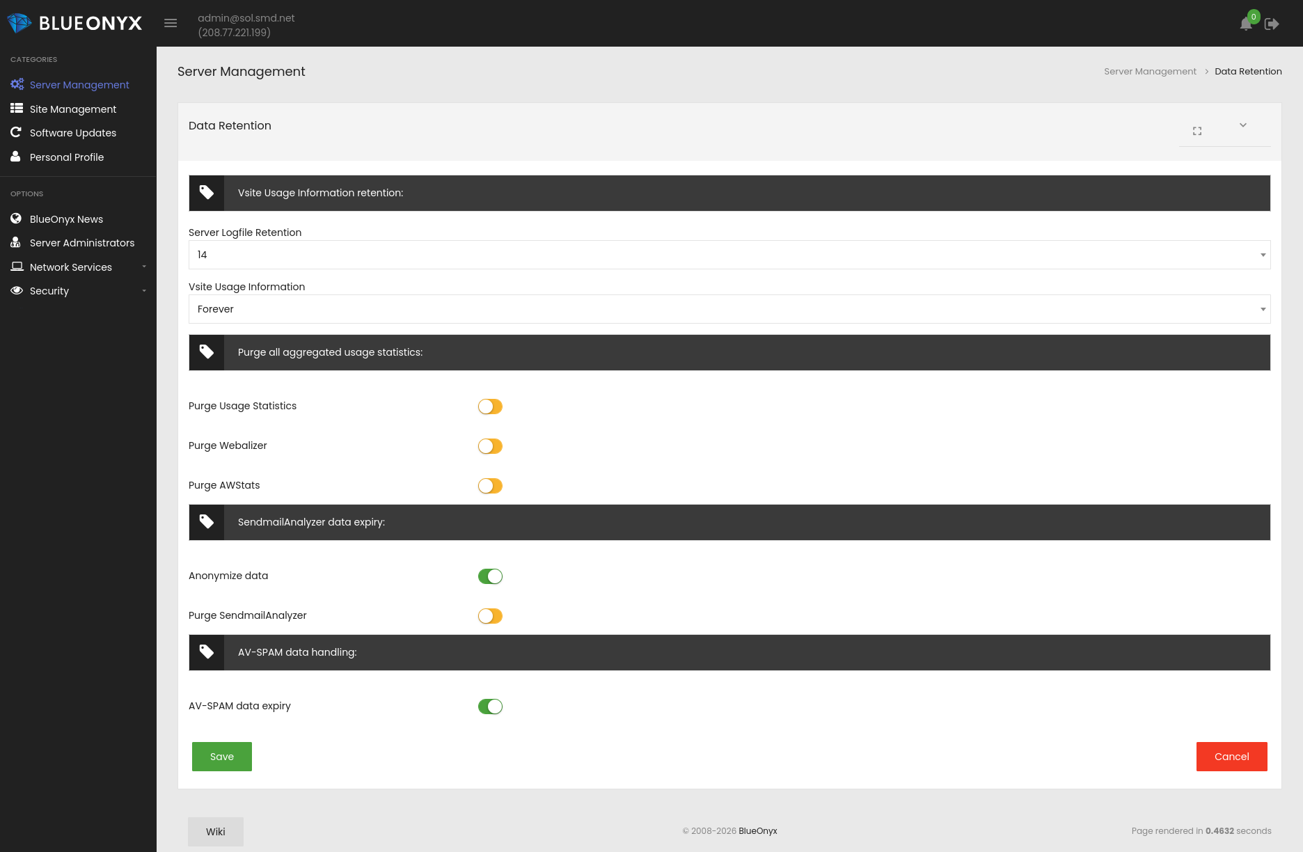 The optional 'AV-SPAM' Package for BlueOnyx also does forms of data retention, depending on how it is configured. Some of that also falls under the scope of the GDPR. For example the feature 'Milter-GeoIP' (if enabled) tracks IP addresses of SMTP- and SMTP-Auth connections and stores them into a MySQL/MariaDB database to aggregate a history of email volume and sender behavior (to track illegal sending attempts). Naturally this information is not anonymized, as that would defeat the purpose. Under the GDPR it may be necessary for you to obtain and preserve documentation of the consent of your email users to this kind of data aggregation.
