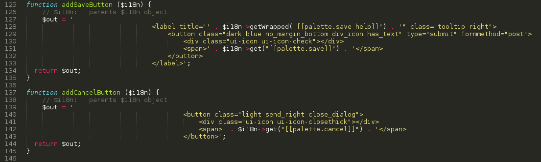 For example, this is how the "save" or "cancel" buttons are done as externalized functions: